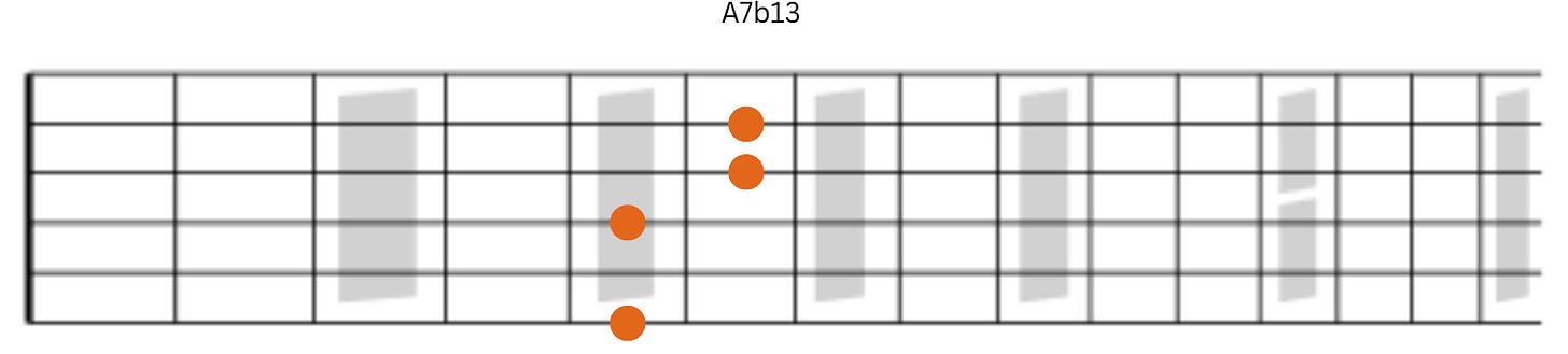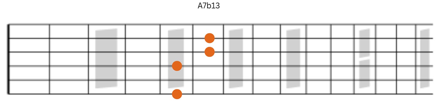 Now we have the A7b13. This moves nicely to the Dm9 chord.