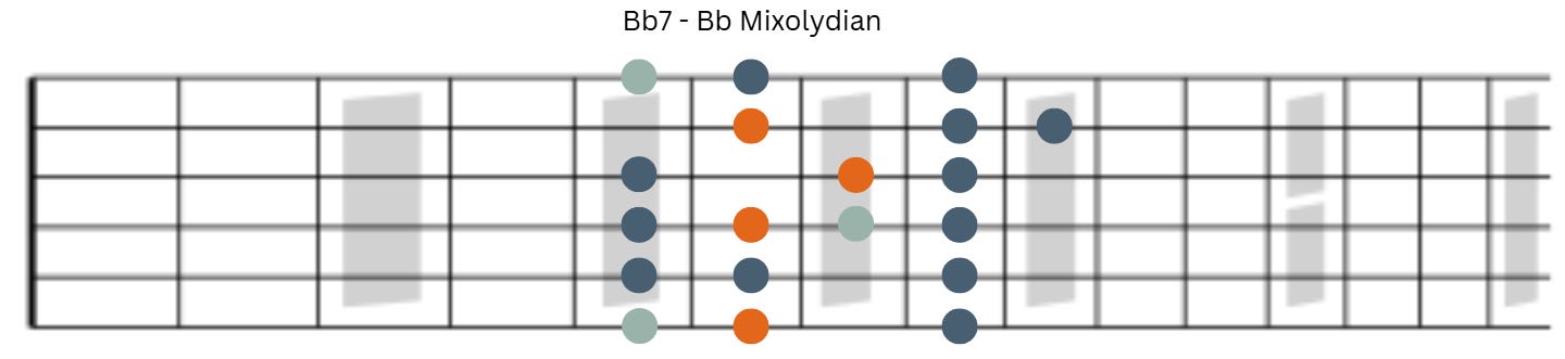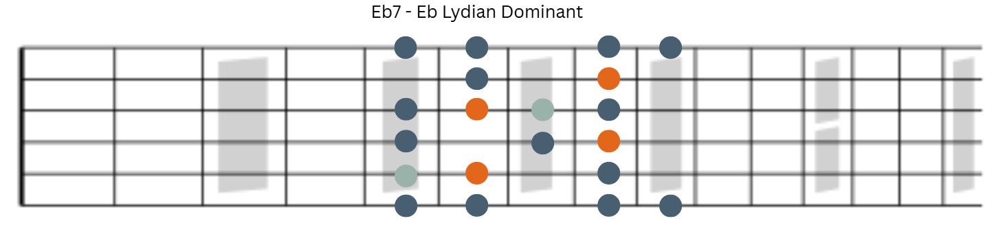 Eb7 is our next chord. We’ll work with a mode of Bb Melodic Minor.