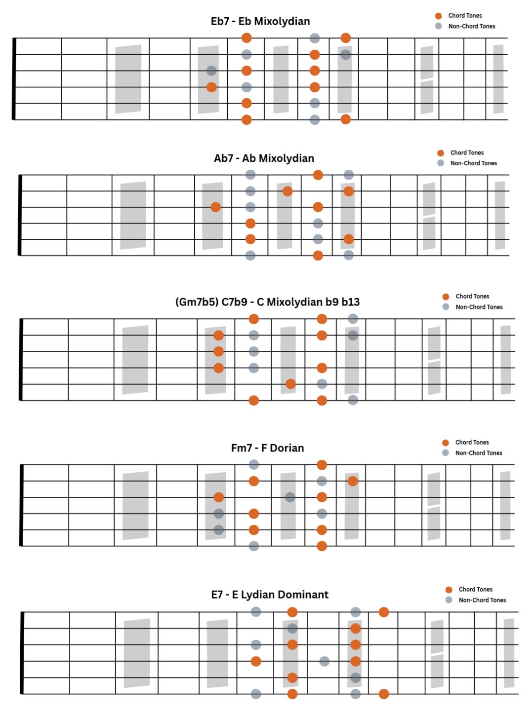 Lee Morgan’s The Sidewinder lays down one of jazz’s most iconic grooves. This post presents a concise chord scale reference for guitarists—designed to support study, analysis, and solo development. Use it as a framework to explore melodic ideas, connect chord tones, and internalize the harmonic language behind this hard bop classic.